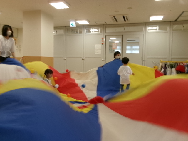 6月11日の「のびのびランド」は、当初の予定ではなく、室内で全身を使った運動遊びをしました。