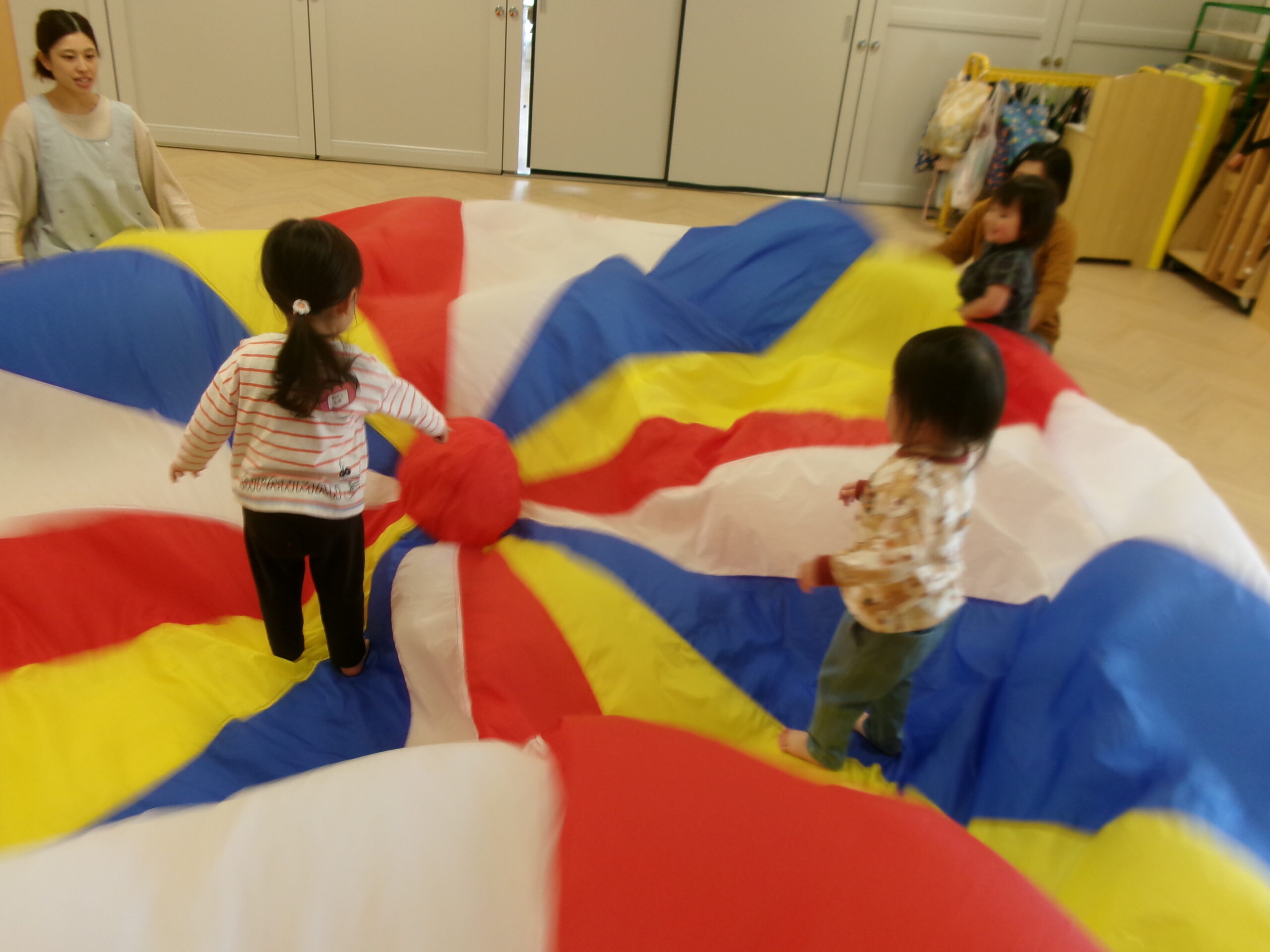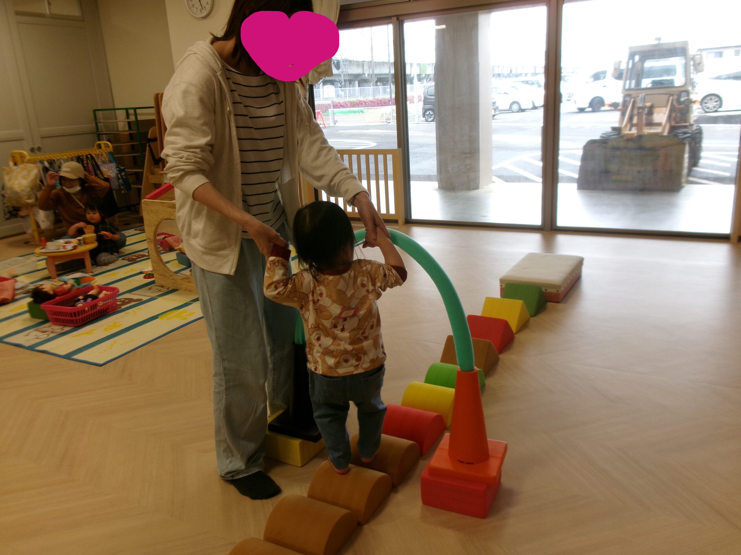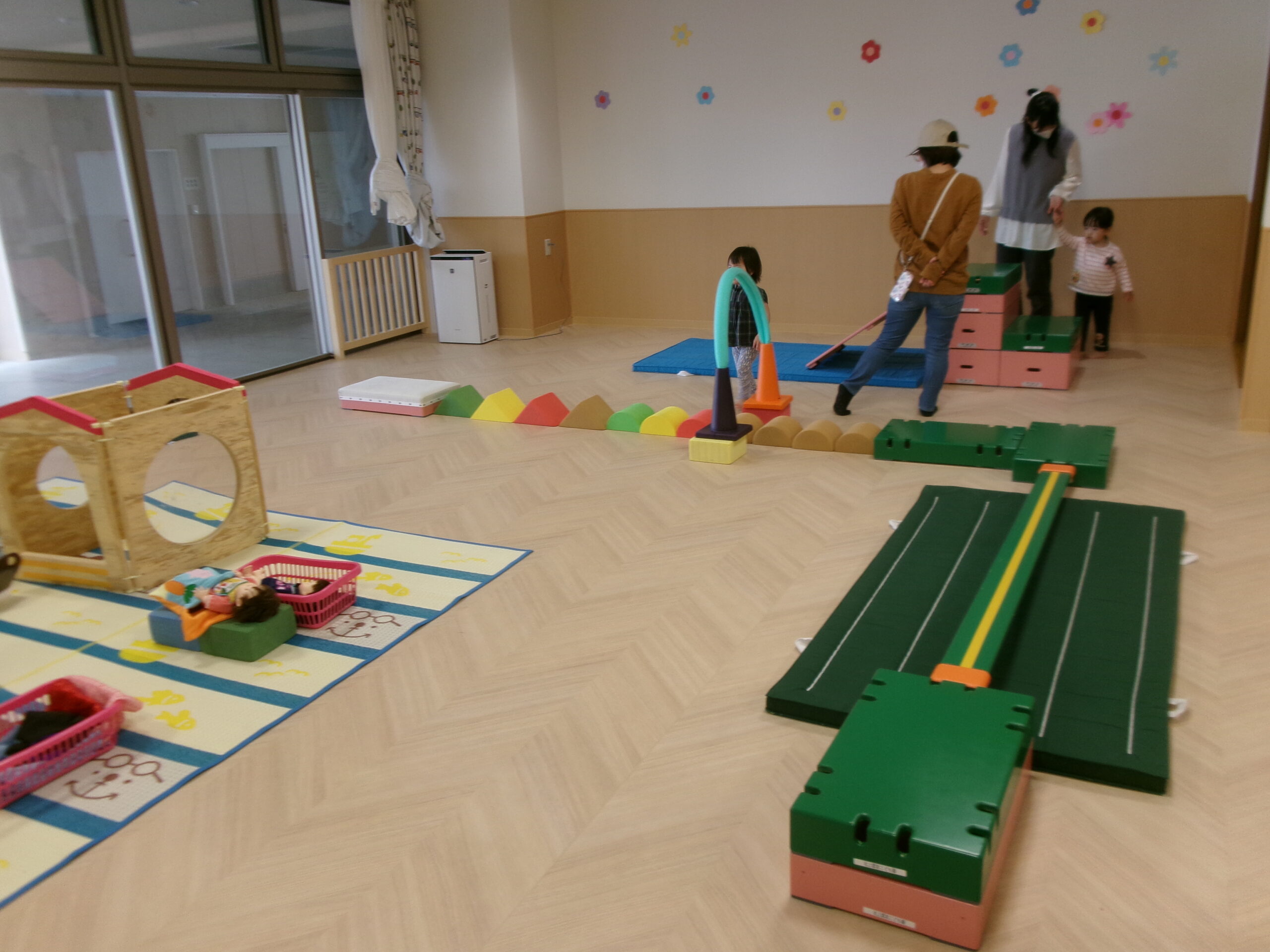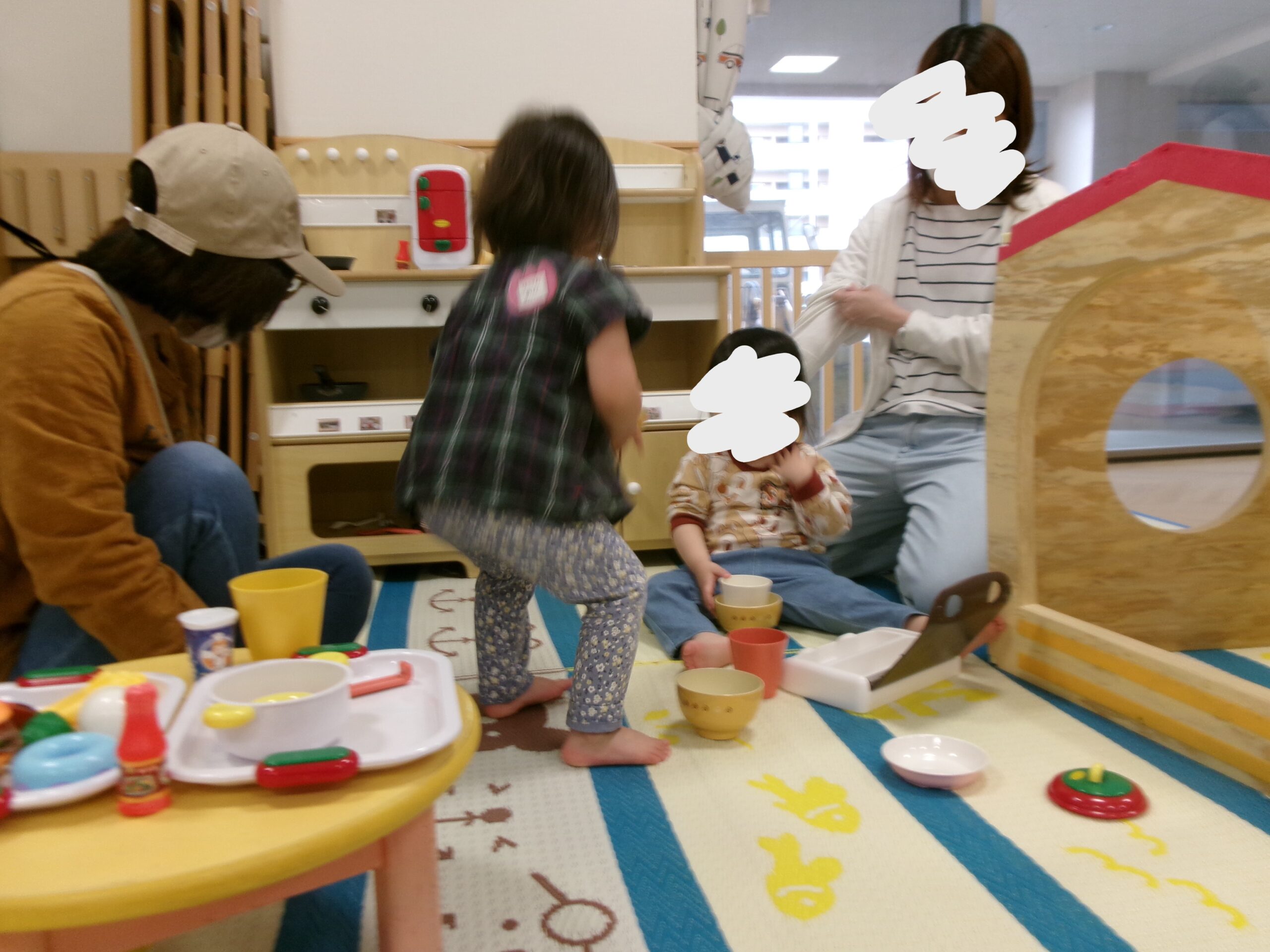 今回はミニサーキットやままごとスペースを設置してゆったりと遊ぶ事にしました。