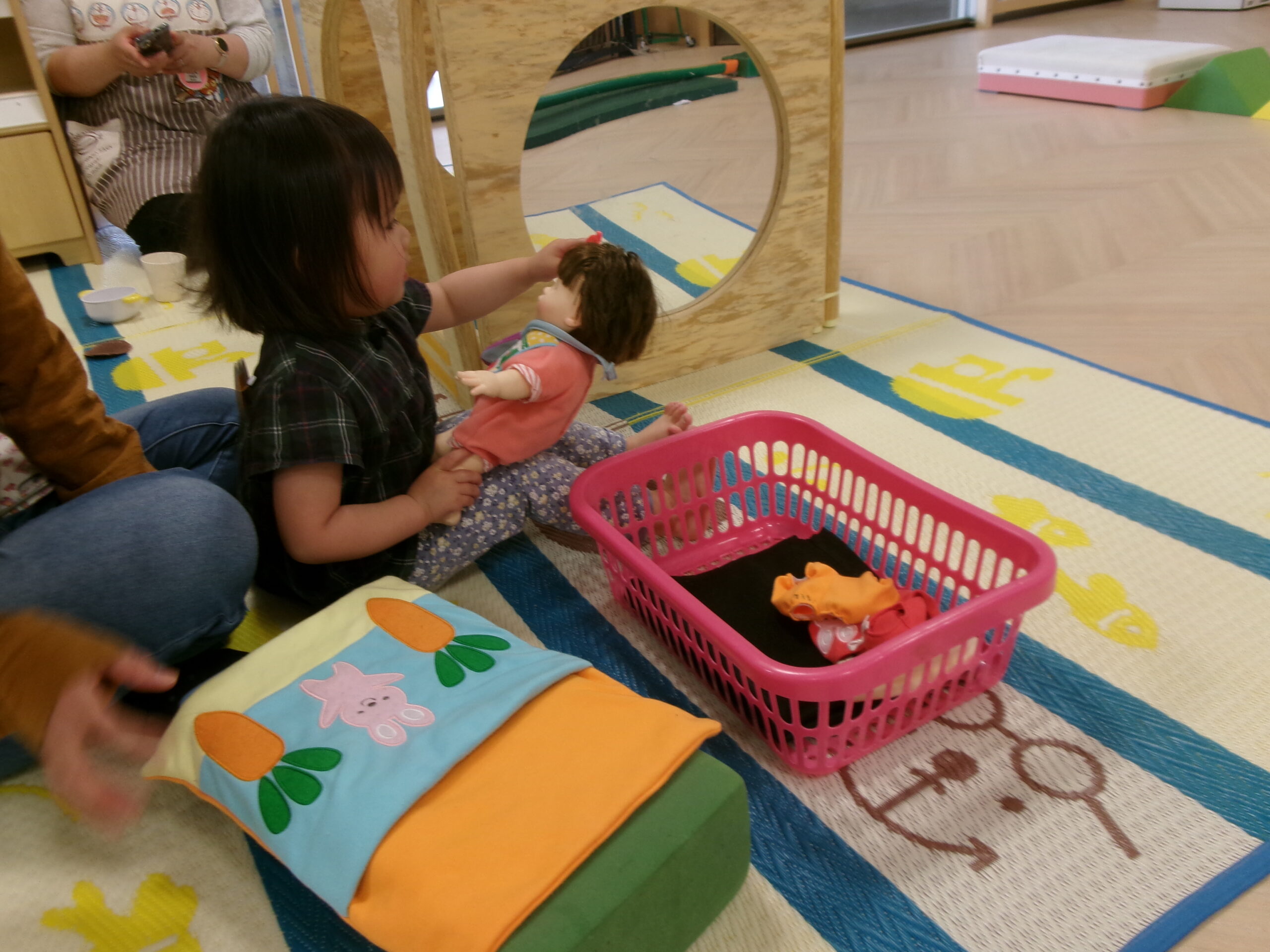 お母さんと一緒に足の刺激を楽しんだり、