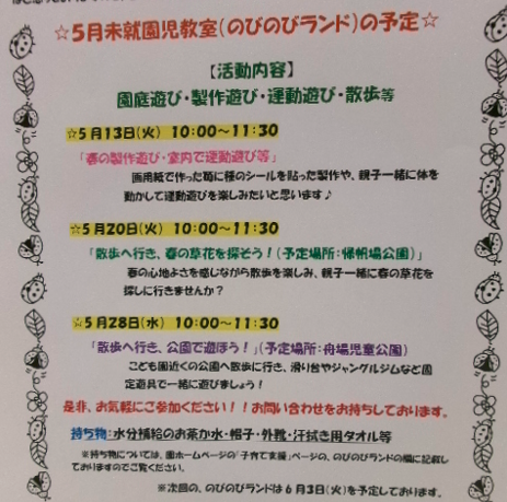 5月の「のびのびランド」のお知らせ